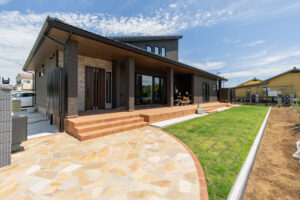 那珂市の自然豊かな環境を活かして庭とリビングを繋げる開放的な設計が可能