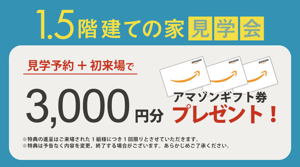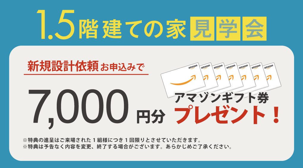 ※アマゾンギフト券の進呈はご来場・設計依頼された1組様につき1回限りとさせていただきます。