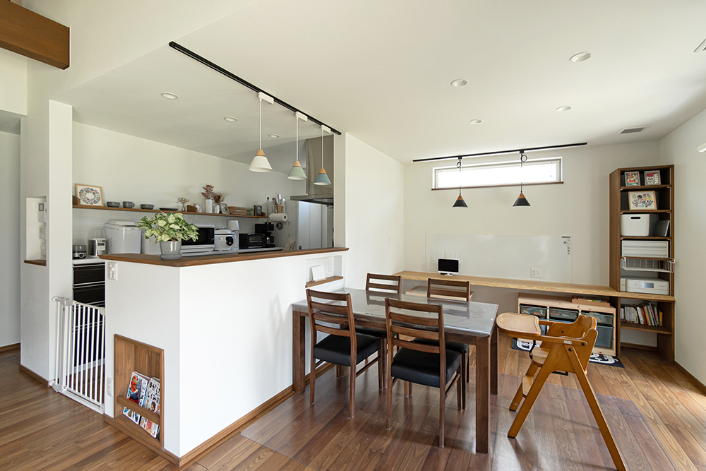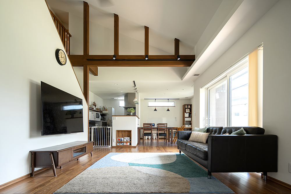 子育てで物が増えがちですが、モデルハウスを参考に各所に収納を設けたおかげでスッキリとした室内が保てるのが嬉しいですね。全館空調も外の気温を忘れてしまうほど快適です。車通りの多い道沿いですが、高気密なおかげで騒音が一切気にならないのも驚いています。